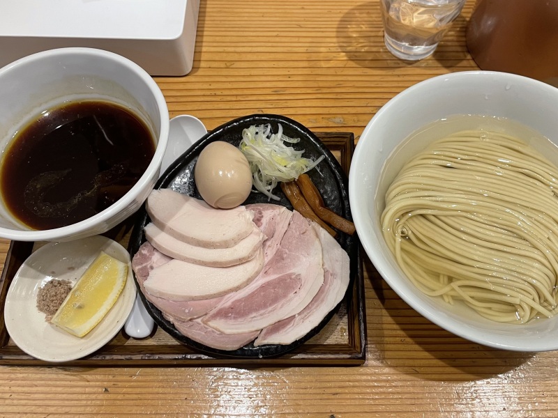 言わずもがな有名店。開店30分前に並びましたが、すでに4人が待っており、開店5分前には30人近くの長蛇の列ができていました。昆布水つけ麺には藻塩がマストなので、しっかり追加注文しました。つけ汁が醤油か塩か選べるだけではなく、油(コーチン、蛤など)も選べてワクワクしました!